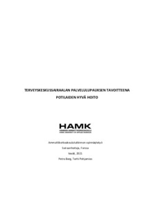 Opinnäytetyö toteutettiin toimeksiantona eteläsuomalaiselle terveyskeskussairaalan akuutti- ja kuntoutusosastoille. Organisaatio on tehnyt palvelulupauksen potilaille ja opinnäytetyön tarkoituksena oli selvittää kyselyn avulla, miten terveyskeskussairaalan potilaat näillä osastoilla kokivat saamansa hoidon ja toteutuiko palvelulupauksessa olevat asiat heidän näkökulmastaan hoitojakson aikana. Tavoitteena oli saada tietoa hoidon laadusta ja saatua tietoa voidaan hyödyntää palveluiden parantamiseen ja henkilökunnan ammattitaidon kehittämiseen.
