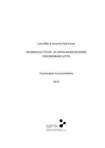 Tämän opinnäytetyön tarkoituksena oli perehtyä toimistotyön ergonomiaan ja sen perusteella tehdä ergonomiaselvitys Rauman kulttuuri- ja vapaa-aikakeskukselle. Tietoa haettiin työkyvystä, ergonomiasta yleensä, toimistotyön ergonomiasta, työter-veyshuollosta ja aihetta koskevasta lainsäädännöstä. Opinnäytetyössä kirjallisuuteen perehtymisen jälkeen suoritettiin käytännön ergonomiaselvitys Näppärä-menetelmän avulla.
