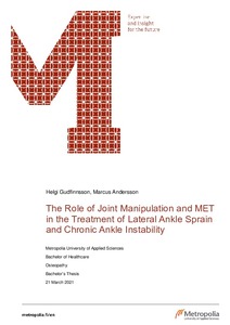 This thesis reviewed the role of joint manipulation and MET, commonly utilized treatment techniques in Osteopathy and other manual therapy professions, in the treatment of lateral ankle sprain and chronic ankle instability. 12 studies with a total of 482 subject were included.