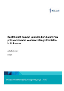 Tämän opinnäytetyön tavoitteena on selvittää kotitekoisten pommien yleisyyttä ilmiönä Suomessa ja Pohjoismaissa, sekä kotitekoisten pommien kohdistamisen yleisyyttä poliisin toimintaa vastaan vahingoittamistarkoituksessa. Opinnäytetyössä tarkoituksena on, tavoitteen selvittämisen avulla, luoda kattava yleiskuva aiheeseen liittyen ja mahdollistaa asian tarkastelu uusien tutkimusten valossa myöhemmin. Vastaavanlaista opinnäytettä ei aiheesta ole tehty.