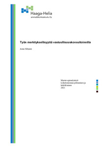 Tämä opinnäytetyö on luonteeltaan tapaustutkimus. Opinnäytetyössä pyrittiin selvittämään millaiset asiat yrityksen vastuullisuusprosessissa mukana olemisessa vaikuttavat työntekijän työn merkityksellisyyden kokemukseen. Vastuullisuus ja työn merkityksellisyys ovat aiheina nykytyöelämän trendikkäimpiä ja ajankohtaisimpia. Aiheita käsittelevän tutkimuksen ja kirjallisuuden määrä on jatkuvasti kasvussa.