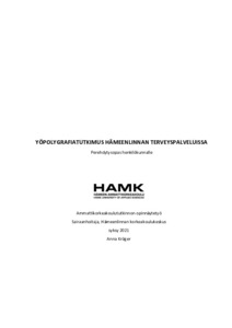 Opas on tehty tilaajan toiveiden ja tavoitteiden mukaisesti mahdollisimman tiiviisti ja selkeästi. Oppaassa kuvataan yöpolygrafiatutkimus, asiakkaan kulkeutuminen tutkimukseen, tutkimukseen ohjauksen suorittaminen sekä tutkimuksen jälkeiset tapahtumat. The purpose of this practice based bachelor’s thesis was to produce familiarization guide for staff of Hämeenlinna health services about night polygraphy examination and patient counseling and offer information for staff using theory part of the thesis. The aim of the thesis was that the guide supports nurses with their orientation and memory when counseling patients being as tight and clear as possible. Another aim was also to describe during theory part of the thesis the knowledge that registered nurse needs about sleep apnea, patient counseling and orientation.