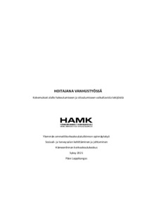 Tämän opinnäytetyön tarkoituksena oli kuvata tekijöitä, jotka vaikuttavat hoitohenkilökunnan hakeutumiseen ja sitoutumiseen vanhusten hoitotyössä sekä saada tietoa alan vetovoimaan vaikuttavista tekijöistä. Tavoitteena oli tuottaa tietoa, jonka avulla henkilökunnan sitoutumista ja hakeutumista vanhusten hoitotyöhön voidaan kehittää. Tutkimus toteutettiin Pirkanmaan yhden kaupungin perusterveydenhuollon vanhustyön hoitajille tätä varten luodulla kyselylomakkeella. Tutkimukseen osallistui 12 vanhustyössä työskentelevää hoitajaa. Saatu aineisto analysoitiin induktiivisella sisällönanalyysillä.