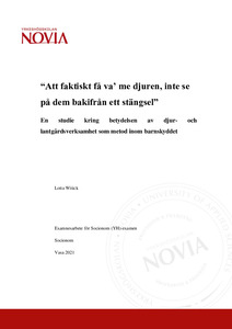 Att faktiskt få va' med djuren, inte se på dem bakifrån ett stängsel : En studie kring betydelsen av djur- och lantgårdsverksamhet som metod inom barnskyddet