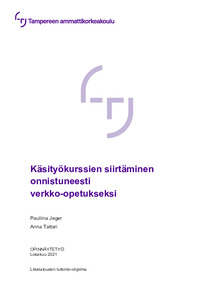 Tämän opinnäytetyön tavoitteena oli tutkia verkkokurssin järjestäjän sekä asiakkaan näkökulmasta sitä, mitä onnistuneen verkkokurssin toteutus vaatii käsityöalalla. Opinnäytetyön tarkoitus oli vastata kysymykseen ”Miten toteutetaan onnistunut verkkokurssi käsityöalalle?”. Työstä rajattiin pois markkinointi sekä verkkokurssin toteutus. Opinnäytetyön aihe nousi esille toimeksiantajan tarpeesta laajentaa asiakaskuntaa, mutta on myös yhteiskunnallisesti ajankohtainen Covid-19-pandemian esiintuoman etäkurssien ja etätyöskentelyn vuoksi. Työ on toiminnallinen opinnäytetyö, jossa teorian tueksi käytettiin laadullisia tutkimusmenetelmiä. Teorian pohjalta laadittiin verkkokurssisuunnitelma pilottikurssia varten, sekä erillinen tarkistuslista -tyyppinen opas verkkokurssien rakentamiseen.