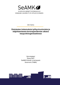 Tässä opinnäytetyössä tutkitaan esimiesten kokemuksia heidän työhyvinvoinnistaan sekä etäjohtamisen käytännöistä kaupunkiorganisaatiossa koronapandemian aikana.