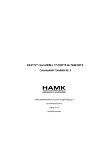 Ohjaamot ovat nuorille suunnattuja monialaisia matalan kynnyksen palvelupaikkoja. Opinnäytetyössä kartoitettiin nuorten toiveita ja tarpeita Etelä-Pirkanmaan Ohjaamotoiminnan suunnittelun ja kehittämisen tueksi. Tutkimus toteutettiin PoVer -hankkeen (ESR) toimeksiantona. Opinnäytetyön keskeiset käsitteet olivat nuori, nuoruus, osallisuus, sekä asiakaslähtöisyys ja palvelumuotoilu. Tutkimus toteutettiin Webropol-kyselynä alueen 2. asteen, toisen vuosikurssin 18–29-vuotiaille opiskelijoille sekä alueen työpajojen 18–29-vuotiaille osallistujille.