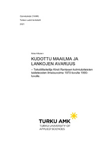 Työskentelyssä ja analyysissä apuna ovat olleet taiteilijan Designmuseolle luovuttama muu arkistoaineisto: luonnokset ja näyttelyjulkaisut sekä taiteilijan omat julkiset kirjoitukset, valokuvat, kirjeenvaihto, opetusaineisto, lanka- ja materiaaliaineisto sekä sanoma- ja aikakauslehtiartikkelit ja näyttelyarvostelut Rantasen uran eri vaiheista. Tärkeänä taustatiedonlähteenä työssä ovat olleet myös puhelinkeskustelut ja sähköpostikirjeenvaihto. Näitä olen käynyt erityisesti tekstiilitaiteilija ja professori emerita Päikki Prihan kanssa. Priha oli sekä Kirsti Rantasen oppilas että myöhemmin kollega ja ystävä. Myös Designmuseon henkilöstöön kuuluvat Susanna Thiel ja Harry Kivilinna ovat antaneet arvokkaita tietoja arkistoaineistoon liittyen. The topic of this thesis is the expressiveness of Finnish textile artist Kirsti Rantanen’s (1930–2020) three-dimensional textile artworks. The artworks of Rantanen haven’t been examined before. Analyzing her work places her art and artistry in the study continuum of Finnish textile art and artists. This thesis has also offered personal artist development for the writer.