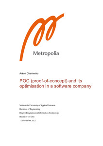 This thesis explores a POC (proof-of-concept) process in a software company with an intention to streamline it and improve POC success by shortening its cycle and reducing the amount of resources spent. In more depth the objective of this final year project is to provide the case company with an action plan to be observed when starting POC with a new customer.