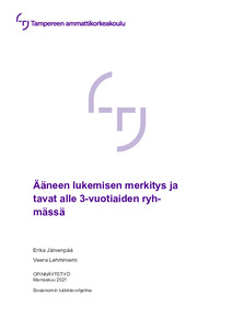Opinnäytetyön tarkoituksena oli kartoittaa, millaisia näkemyksiä varhaiskasvatuksen opettajilla on ääneen lukemisen merkityksestä alle 3-vuotiailla lapsille. Lisäksi selvitettiin, millaisia tapoja ja ääneen lukemisen käytänteitä alle 3-vuotiaiden ryhmässä on. Tavoitteena oli kannustaa varhaiskasvatuksen opettajia hyödyntämään ääneen lukemista varhaiskasvatuksessa. Lisäksi haluttiin tuoda esille ääneen lukemisen ja kirjallisuuden tärkeä merkitys osana lasten varhaiskasvatuspäivää. Opinnäytetyö toteutettiin kvalitatiivisena tutkimuksena ja aineisto kerättiin verkkokyselyn avulla. Analysointi tehtiin aineistolähtöisellä sisällönanalyysillä.