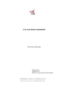 Kitusen Kievarin uuden à la carte-listan suunnittelussa pääpainoina toimivat kannattavuus ja asiakaslähtöisyys. Työn tutkimusosuus toteutettiin tekemällä menuanalyysi Kitusen Kievarin nykyisestä à la carte-listasta, josta saatuja tuloksia käytetään hyväksi uuden listan suunnittelussa. Menuanalyysiin tarvittavat tiedot kerättiin kevään ja kesäkuun 2012 aikana. Asiakkaiden mielipiteet työssä huomioidaan liikenneasemalla aiemmin tekemäni asiakastyytyväisyystutkimuksen perusteella.