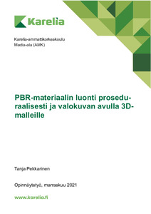 Opinnäytetyön tavoitteena oli selvittää, mitä ovat PBR-materiaalit, millä eri menetelmillä niitä voidaan tehdä ja missä niitä käytetään. PBR (physically based rendering) on fysiikkaan perustuva renderöintitekniikka. Toiminnallisessa osiossa perehdyttiin aiheeseen toteuttamalla PBR-materiaalit kahdella eri menetelmällä. Näiden kahden materiaalin työskentelyprosessit myös avattiin havainnollistavien kuvien avulla. Pääpaino opinnäytetyössä on tekijän ammattitaidon kehittymisessä ja uuden oppimisessa.