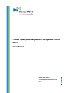 Tämän opinnäytetyön aiheena on esimies hyvän yhteishengen mahdollistajana virtuaalitiimissä. Työssä on käsitelty etäjohtamista, etätyötä, virtuaalitiimiä, tiimin yhteishenkeä sekä yhteisöllisyyttä virtuaaliympäristössä. Kohdeorganisaationa on finanssialan yritys, mutta työni on yleispätevä ja sen tuloksia voivat hyödyntää esimiehet alasta riippumatta.