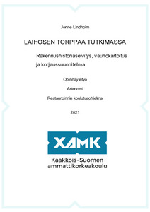 Tässä tutkimuksessa tutkittiin Laihosen torpan päärakennuksen rakennushistoriaa. Tutkimuksen tavoitteena oli havainnoida rakennusta kokonaisvaltaisesti: dokumentoida ja tulkita siinä näkyviä piirteitä, kartoittaa kaikkien rakenteiden vauriot ja suunnitella korjaustoimenpiteet rakennuksen säilymisen turvaamiseksi. Työn produktiivisina osina tehtiin Laihosen torpan päärakennukselle rakennushistoriaselvitys ja korjaussuunnitelma. Osana työn produktiivista osuutta asiakkaalle tehtiin lisäksi tutkimuksen liitteenä oleva erillinen, kiinteistön kaikki rakennukset käsittävä, kustannusarvioin varustettu, pidemmän aikavälin huoltokirja -tyyppinen korjaussuunnitelma. Tutkimuksessa käytettiin kvalitatiivisen suuntauksen mukaisia tutkimusmenetelmiä.