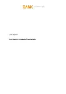 Opinnäytetyöhön koottiin tietoa geotekstiilituubeista ja esimerkkikäyttökohteista Suomesta sekä ulkomailta. Esimerkkikohteilla pyrittiin tuomaan esille mahdollisimman monenlaisia käyttökohteita, joilla nähdään olevan käyttömahdollisuutta Suomessakin.