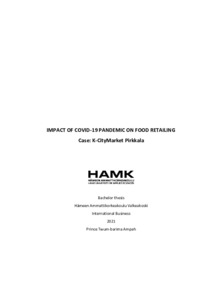 Finnish food market retailers in Finland are making several efforts to cope with the Covid-19 pandemic and adapt to the most suitable business model with the current crisis. K-Citymarket will be the focus point on some aspects of this thesis, this thesis aspires to explore the subject, analyze some critical business decisions, business models and processes the Finnish food retailing sector have put in place to become accustomed to the current crisis in the country.
