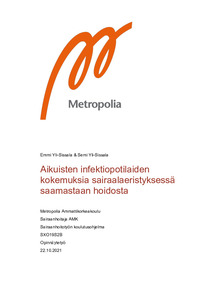 Opinnäytetyömme aiheena on aikuisten infektiopotilaiden kokemukset eristyksessä saamastaan hoidosta sairaalassa. Opinnäytetyön tarkoituksena on kuvailevan kirjallisuuskatsauksen kautta kuvailla aikuisten infektiopotilaiden kokemuksia saamastaan hoidosta eristyksessä sairaalassa. Analyysimenetelmänä käytimme induktiivista sisällönanalyysia. Opinnäytetyön tavoitteena on tuottaa ajantasaista tutkittua tietoa suomeksi potilaiden kokemuksista eristyksissä sekä tutkimuksemme tavoitteena on parantaa eristyshoidonlaatua. Työtämme voi hyödyntää terveydenhuollon moniammatillinen työyhteisö sekä terveysalan opiskelijat.