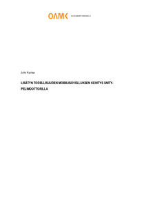 Opinnäytetyön tarkoituksena oli perehtyä lisättyyn todellisuuteen, sen historiaan ja käyttökohteisiin sekä lisätyn todellisuuden mobiilisovelluksen kehitykseen Unity-pelimoottorilla. Opinnäytetyössä käydään läpi mobiilisovelluksen tekeminen valituilla työkaluilla ja perehdytään siihen, millaisia lisätyn todellisuuden ominaisuuksia mobiililaitteilla voidaan hyödyntää. Tässä opinnäytetyössä keskitytään mobiilisovelluksen tekemiseen Android-pohjaisille laitteille, joille on olemassa omat kehitystyökalut.
