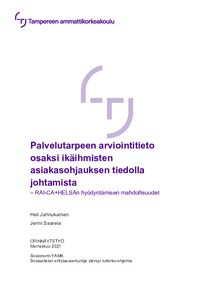 Palvelutarpeen arviointitieto osaksi ikäihmisten asiakasohjauksen tiedolla johtamista : RAI-CA+HELSAn hyödyntämisen mahdollisuudet