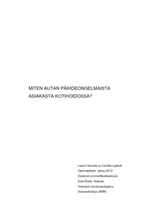 Hautala, Leena & Lybäck, Camilla. Miten autan päihdeongelmaista asiakasta kotihoidossa? Diak Etelä, Helsinki, syksy 2012, 81 s., 4 liitettä. Diakonia-ammattikorkeakoulu, Hoitotyön koulutusohjelma, sairaanhoitaja (AMK).