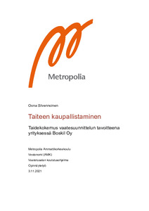Taiteen kaupallistaminen : Taidekokemus vaatesuunnittelun tavoitteena yrityksessä Boskil Oy