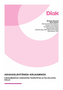 Tämän opinnäytetyön tarkoituksena oli luoda opas, jonka avulla kirjaaminen olisi asiakaslähtöistä ja rakenteellista. Opinnäytetyön tavoitteena on lisätä hoitajien tietoutta asiakaslähtöisestä kirjaamisesta. Opinnäytetyömme yhteistyötahona on kunnan vanhuspalvelut. He tarvitsivat ohjausta yhtenevään tapaan kirjata ja päädyimme yhdessä oppaaseen, jonka me opiskelijat laadimme heille työkaluksi. Opas tavoittaa työntekijät konkreettisesti, oppaan sisäistäminen jää henkilökunnan vastuulle. Opas koostuu rakenteellisesta ja asiakaslähtöisestä kirjaamisesta ja sen merkityksestä päivittäisessä työssä sekä lakien ja asetusten tuomasta vastuusta omassa työskentelyssä.