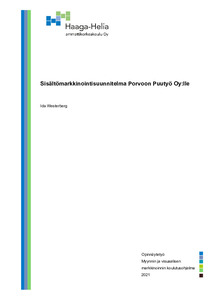 Tämä opinnäytetyö on tehty toimeksiantona Porvoon Puutyö Oy:lle. Toiminnallisen opinnäytetyön tavoitteena oli luoda sisältömarkkinointisuunnitelma, joka toimii ohjeistuksena toimeksiantajayrityksen markkinoinnin kehittämiselle. Alatavoitteena toimi toimeksiantajan asettamat tavoitteet. Ensimmäisenä tavoitteena oli, että ohjeistuksen avulla saataisiin markkinointi 2020 luvulle hyödyntämällä ajankohtaisia kanavia ja työkaluja. Toisena tavoitteena oli, että suunnitelman avulla tavoitettaisiin isännöitsijöitä ja arkkitehtejä, jotka eivät vielä ole heidän asiakkaitaan.