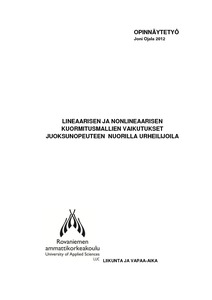Tämän työn tarkoituksena oli tutkia nonlineaarisen ja lineaarisen kuormitusmallin vaikutuksia juoksunopeuteen nuorilla urheilijoilla. Nonlineaarisen kuormitusmallin tukena ovat aiemmin havaitut positiiviset vaikutukset maksimivoimaharjoittelun puolelta.