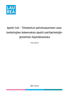 Apotti tuli - tehostetun palveluasumisen osastonhoitajien kokemuksia Apotti-potilastietojärjestelmän käyttöönotosta