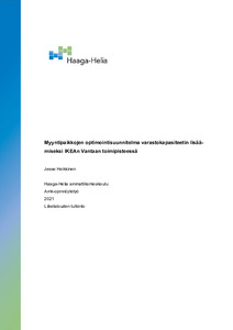 Tässä toiminnallisessa opinnäytetyössä luotiin myyntipaikkojen optimointisuunnitelma IKEAn Vantaan tavaratalolle. Työn tavoitteena oli vapauttaa varastotilaa toimeksiantajayritykselle muuttamalla tuotteiden myyntipaikkojen koot toiminnanohjausjärjestelmässä vastaamaan entistä tarkemmin niiden fyysistä kokoa varastossa. Idea aiheeseen syntyi toimeksiantajayrityksen vuosittaisista haasteista varastokapasiteetin ylittyessä.