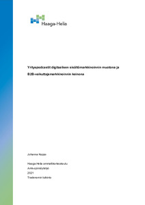Opinnäytetyön tietoperustan punaisena lankana kulkivat digitaalinen sisältömarkkinointi B2B-kontekstissa sekä B2B-vaikuttajamarkkinointi, joiden voidaan katsoa nivoutuvan läheisesti toisiinsa. B2B-vaikuttajamarkkinointi voidaan nähdä yhtenä sisältömarkkinoinnin keinona ja trendinä. Sisältömarkkinoinnin lisäksi myös B2B-vaikuttajamarkkinoinnin voidaan nähdä integroituvan osaksi kaikenlaisten yritysten markkinointistrategiaa.