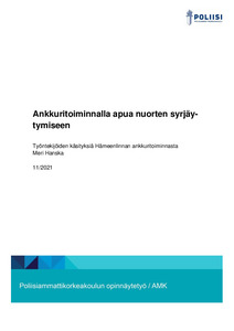 Työni on toteutettu tutkimuksellisena opinnäytetyönä, jonka tarkoituksena on tutkia voiko Ankkuri- toiminnalla auttaa syrjäytyneitä nuoria. Työni tarkoitus on tuoda esille monille eri ammattiryhmille ja päättäjille myös sitä, kuinka tärkeää ennalta estävä työ nuorten parissa on.