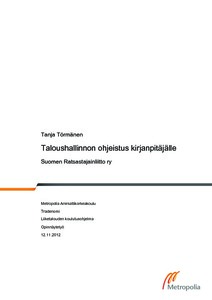 Opinnäytetyön tavoitteena oli luoda ohjeistus Suomen Ratsastajainliiton taloushallinnosta kirjanpitäjille. Ohjeistuksen tarkoituksena oli kerätä yhteen tärkeimmät käytännöt ja periaatteet liiton taloushallinnosta niin, että liiton taloushallintoa hoitavilla henkilöillä olisi yhtenäinen kuva taloushallinnon sisällöstä ja siihen liittyvistä tehtävistä.
