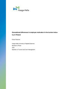 The main research problem was to compare employee motivation in the tourism industry between Generation X and Millennials in Finland. The main objective of the research was to find out what motivates the younger generation and is it different from what motivates their predecessors, and to provide recommendations for tourism industry employers on how to better motivate their employees as the older generation is giving way for the new.
