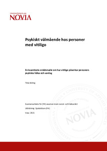 Psykiskt välmående hos personer med vitiligo : En kvantitativ enkätstudie om hur vitiligo påverkar personers psykiska hälsa och vardag
