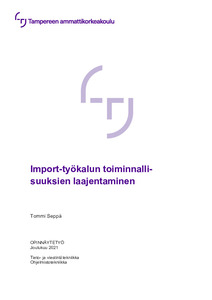 Opinnäytetyön tarkoituksena oli laajentaa olemassa olevan Import-työkalun toiminnallisuuksia vastaamaan käyttäjien nykyistä tarvetta. Työkalulla tuodaan PLM XML- ja 3D CAD -muotoista dataa tuotteen elinkaaren hallintaohjelmisto Teamcenteriin. Työkalu toi työn aloitushetkellä kaikki nimikkeet vain yhdellä julkaisutilalla järjestelmään. Tämä oli ongelmallista, sillä vain yhden julkaisutilan käyttö aiheutti datassa puutteita. Jatkossa käyttäjien tuli voida valita julkaisutila, millä nimikkeet järjestelmään vietäisiin. Työn aikana päivitettiin myös työkalun dokumentaatiota.