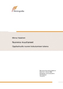 Opinnäytteeni tavoitteena oli selvittää perusopetuksen päättövaiheessa (noin 13 – 18 vuotta) Suomeen muuttavien nuorten maahanmuuttajien kotoutumiseen liittyviä merkittäviä tekijöitä sekä oppilashuollon roolia kotoutumisen tukemisessa. Tapaustutkimuksen kontekstina toimi Vantaan aikuisopiston monikulttuurinen perusopetus ja sen oppilashuolto. Työni liittyi maahanmuuttajien kotoutumista kokonaisvaltaisesti kehittävään Osallisena Suomessa Vantaan osahankkeeseen, jossa paneudutaan nuorten maahanmuuttajien ohjauksen, oppilashuollon ja koulutuksen kehittämiseen. Työn tuloksia hyödynnetään hankkeessa liittämällä nuorten ääni kehittämistyöhön.