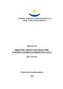Tämän opinnäytetyön tarkoituksena on selvittää, miksi pienet ja keskisuuret yritykset hankkivat ERP-toiminnanohjausjärjestelmän. Kysymykseen etsitään vastausta kolmen eri toimialoilla toimivan pk-yritysten kanssa käydyistä teemahaastatteluista. Lisäksi tutkimuksella halutaan selvittää toiminnanohjauksen ja ohjelmiston yhteyksiä sekä pyrkiä paremmin ymmärtämään pk-yrityksen liiketoimintaa toiminnanohjauksen näkökulmasta. Tavoitteet ovat tutkimuksen toimeksiantajan eli Turun ammattikorkeakoulun asettamat. Lisähyötynä tutkimus muun muassa palvelee pk-yrityksiä antamalla niille paremman kuvan toiminnanohjausjärjestelmien toimintaperiaatteista ja hyödyistä.