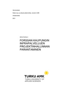 Opinnäytetyön tavoitteena oli Forssan kaupungin Infrapalvelujen projektinhallinnan parantaminen ja nykyisen dokumentoinnin kehittäminen. Suurimmat ongelmat infrapalvelujen projektinhallinnassa ovat visuaalisen seurannan ja projektisuunnitelman puute. Dokumentointia vaikeuttaa selkeän tallennuspaikan puute, mikä johtaa asiakirjojen kasaantumiseen sekaisin samaan kansioon. Työn toimeksiantajana toimi Forssan kaupungin Infrapalvelut.