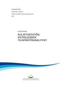 Opinnäytetyön tarkoituksena oli antaa kattava kuva kuljetusyrityksen kilpailijoiden taloudellisesta tilanteesta tilinpäätösanalyysin avulla ja saatujen tulosten perusteella arvioida kilpailijayritysten tulevaisuuden näkymiä. Työssä tutkittiin kilpailijayritysten kannattavuuden, vakavaraisuuden, maksuvalmiuden, tehokkuuden ja toiminnan laajuuden muutoksia viiden vuoden ajanjaksolla. Opinnäytetyön tavoitteena oli tuottaa tietoa, joka auttaisi yritystä päätöksenteossa ja toiminnankehittämisessä.