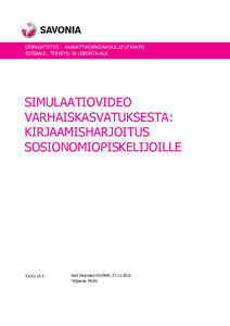 Opinnäytetyöprosessissa tuotettiin Savonia-ammattikorkeakoululle pedagoginen oppimateriaali, jonka avulla sosionomiopiskelijat pääsivät harjoittelemaan varhaiskasvatuksen kirjaamista. Tuotettu oppimateriaali koostui kuvitteellisen tapausesimerkin avulla kuvatusta simulaatiovideosta ja siihen liittyvästä hyvän kirjaamisen mallista. Opinnäytetyö toteutettiin kehittämistyönä ja sen tavoitteena oli lisätä oppimateriaalin avulla varhaiskasvatukseen suuntautuvien sosiaalialan ammattikorkeakouluopiskelijoiden kirjaamistietoutta ja näin luomaan heille paremmat valmiudet kirjaamiseen.