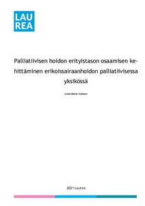 Opinnäytetyönä tehtävä kehittämistyö käsittelee hoitohenkilökunnan palliatiivisen hoidon ja saattohoidon erityistason osaamisen kehittämistä erässä erikoissairaanhoidon palliatiivisessa yksikössä. Tavoitteena oli kartoittaa yksikön palliatiivisen erityistason osaamista hoitohenkilökunnan itsearvioimana ja selvittää hoitohenkilökunnan osaamisen kehittämisen tarpeet ja tavat. Valtakunnallisten palliatiivisen hoidon suositusten ja selvityksen perusteella yksikölle muodostettiin koulutuspolku hoitohenkilökunnan osaamisen kehittämiseksi.