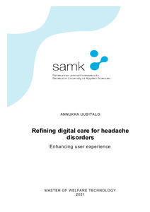 This was a development project of a digital care path for patients with headache disorders in Helsinki University Hospital. The digital care path was originally produced in 2018. It consists of information for the patient, physiotherapeutic and cognitive behavioral coaching, and a mobile headache diary. The project focused on patient centered care. The goal was to clarify user experience of the current care path and to gather development ideas to better support the needs of patients in their care for headache disorders. User interviews were selected to gain rich data. Altogether eight informants were interviewed.