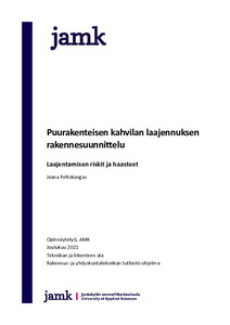 Opinnäytetyön aiheena on puurakenteisen kahvilan rakennesuunnittelu ja laajentamiseen liittyvät riskit ja haasteet. Rakennesuunnittelun osalta tarkastelussa oli laajennuksen rakenteelliset ratkaisut ja järjestelmät aina perustuksilta vesikatolle saakka. Laajentamiseen liittyviä riskejä ja haasteita käsiteltiin sekä rakennesuunnittelun, arkkitehtisuunnittelun, että rakentamisen osalta. Työssä tavoitteena oli löytää keinoja siihen, kuinka riskit voitaisiin välttää ja ottaa huomioon laajennuksen eri suunnitteluvaiheissa ja rakentamisen aikana.
