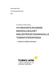 Tämän opinnäytetyön tarkoituksena oli koota saatavilla olevaa tietoa ja näyttöä hyvinvointiliikunnan hyödyistä mielenterveysasiakkaiden kanssa sekä selvittää, miten hyvinvointiliikuntaa voitaisiin käyttää toimintaterapiassa kyseisen asiakasryhmän kanssa. Tavoitteena oli luoda helposti lähestyttävä katsaus, joka yhdistää hyvinvointiliikunnan, mielenterveyden ja toimintaterapian. Opinnäytetyö toteutettiin integroituna kirjallisuuskatsauksena.