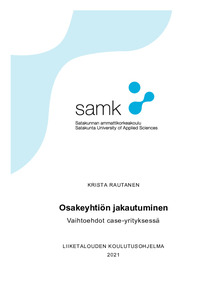 Opinnäytetyössä perehdyttiin osakeyhtiön jakautumiseen osakeyhtiölain ja elinkeinoverolain näkökulmasta. Työn toimeksiantaja oli määrittänyt selkeän tutkimuskysymyksen ja tarkoituksena oli selvittää, millaisia mahdollisuuksia case-yrityksessä on jakautuminen toteuttaa ja, mikä vaihtoehdoista on osakkeenomistajan kannalta edullisin. Tavoitteena oli myös koostaa selkokielinen kirjallinen raportti osakeyhtiön jakautumisesta toimeksiantajalle. Työn teoreettisen perustan muodosti oikeuslähdeoppi ja keskeisimpiä oikeuslähteitä olivat osakeyhtiölain 17 luku, elinkeinoverolain 52 c §, oikeustapaukset, oikeuskirjallisuus sekä viranomaisohjeet.