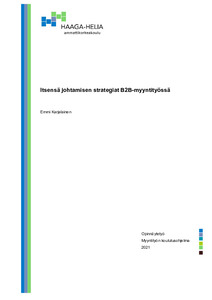 Tämän opinnäytetyön tarkoituksena on selvittää B2B-myyjälle hyödyllisiä itsensä johtamisen strategioita sekä niiden vaikutuksia. Aiheesta on toistaiseksi tehty niukasti tutkimusta, joten tällä kuvailevalla kirjallisuuskatsauksella tuodaan esiin olemassa oleva tutkittu tieto ja sen hyödynnettävyys B2B-myyjän työssä.