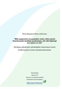 "Mitä nopeemmin me pystytään niinku niihin pieniin kivenmurusiin tavallaan puuttumaan, niin sitä helpompi sen lapsen on olla" : Seinäjoen päiväkotien työntekijöiden kokemuksia huolen heräämisestä ja huolen puheeksiottamisesta.