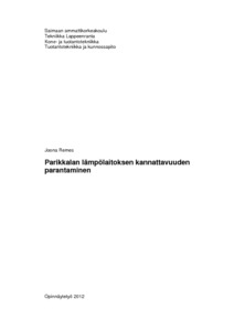 Tämä opinnäytetyö kertoo Parikkalan lämpölaitoksella ilmenneistä ongelmista ja niiden erilaisista ratkaisumahdollisuuksista. Ongelmat laitoksella ovat hyvin laaja-alaisia ja niiden ratkaisemiseksi vaaditaan suuria investointeja laitoksen omistavalta Parikkalan kunnalta. Opinnäytetyön tavoitteena on saada laitoksen kannattavuus paremmaksi ja laitokseen tehdyt investoinnit tuottaviksi.