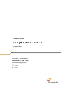 Tämän opinnäytetyön tarkoituksena oli luoda yritykselle toimintamalli projektinhoitoon. Työ on tehty toimeksiantona Kauklahden Lämpöasennus Oy:lle. Työssä pureuduttiin yrityksen toimintatapoihin ja esitettiin niille nykyisten vaatimusten mukaiset ratkaisut yrityksen omien lähtökohtien mukaan.